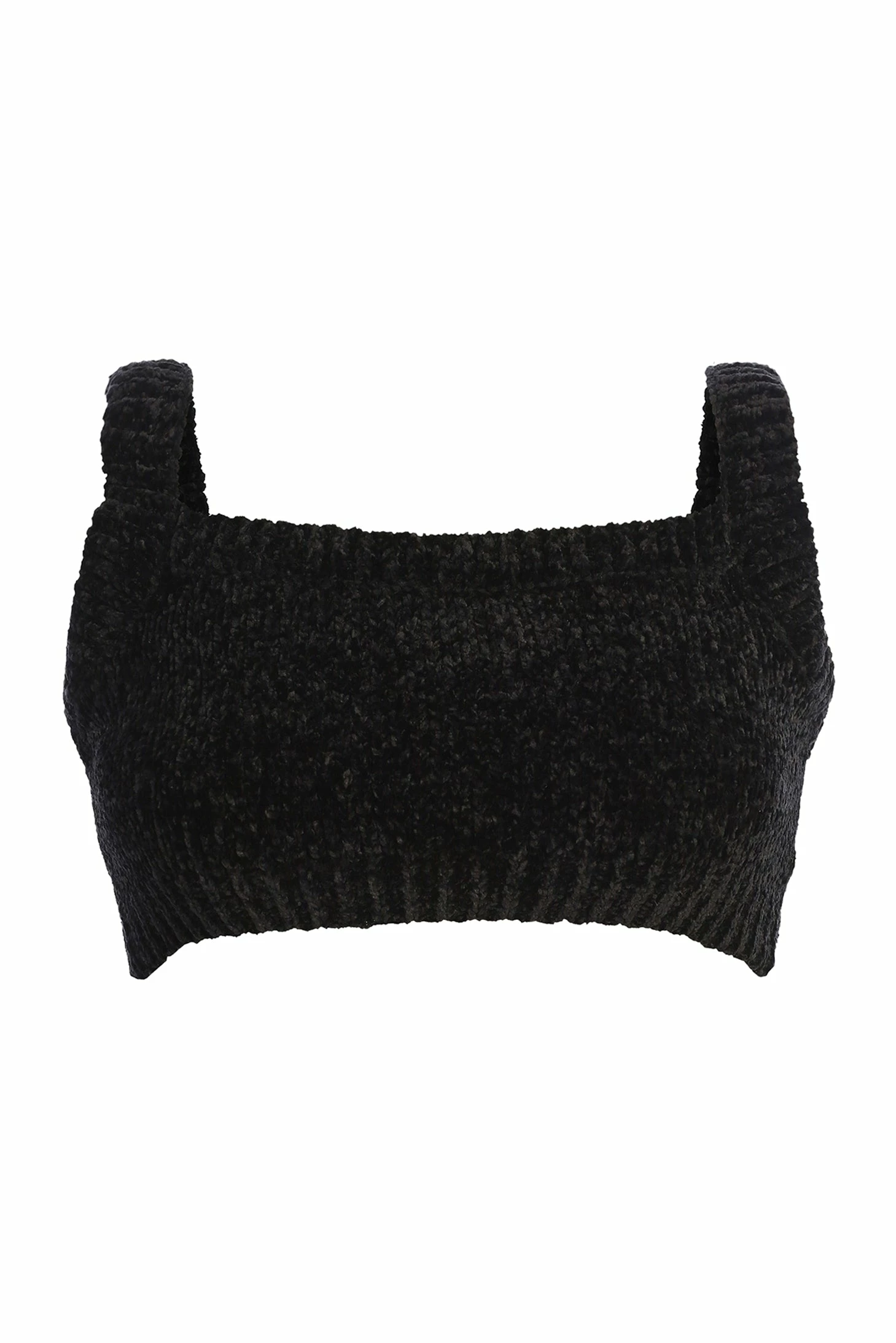EXCLUSIVELY DESIGNED BY US FOR YOU. You’ll wear our BLACK GEMMA CROP CHENILLE TOP every chance you get! This trendy chenille material crop top features a scoop neckline with thin ribbed shoulder straps and a ribbed crop top hem. A top versatile enough to be styled any way you like! Pair with our