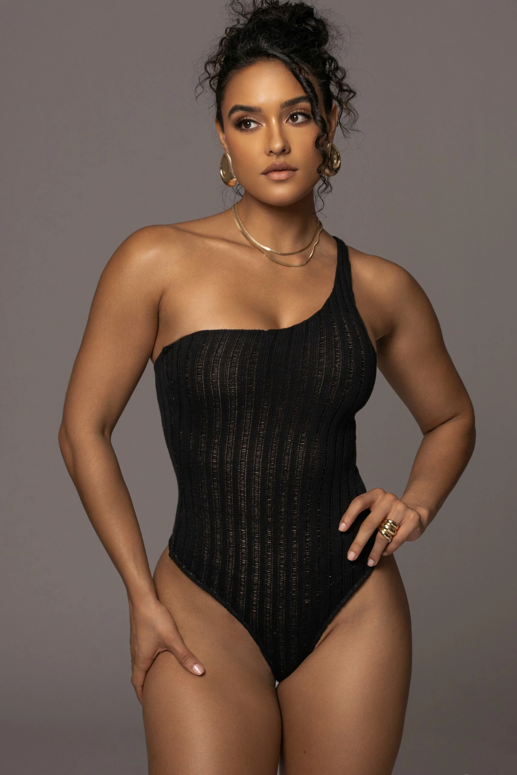 Our Black Malibu Nights One Shoulder Bodysuit is a must have this season! This carefully crafted bodysuit achieves rib knit perfection in a stunning one shoulder design with double-lining and a snap bottom closure. Pair with our