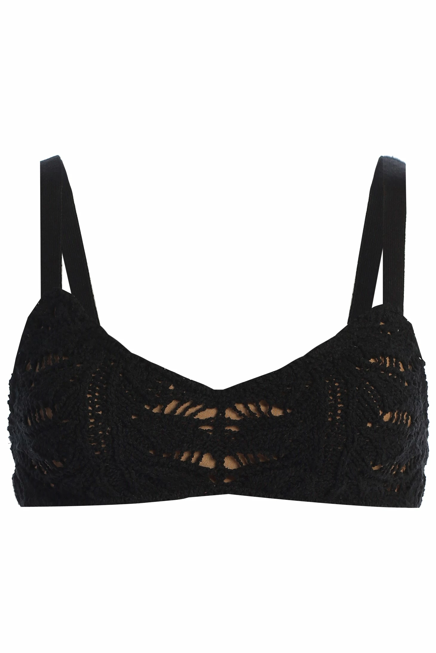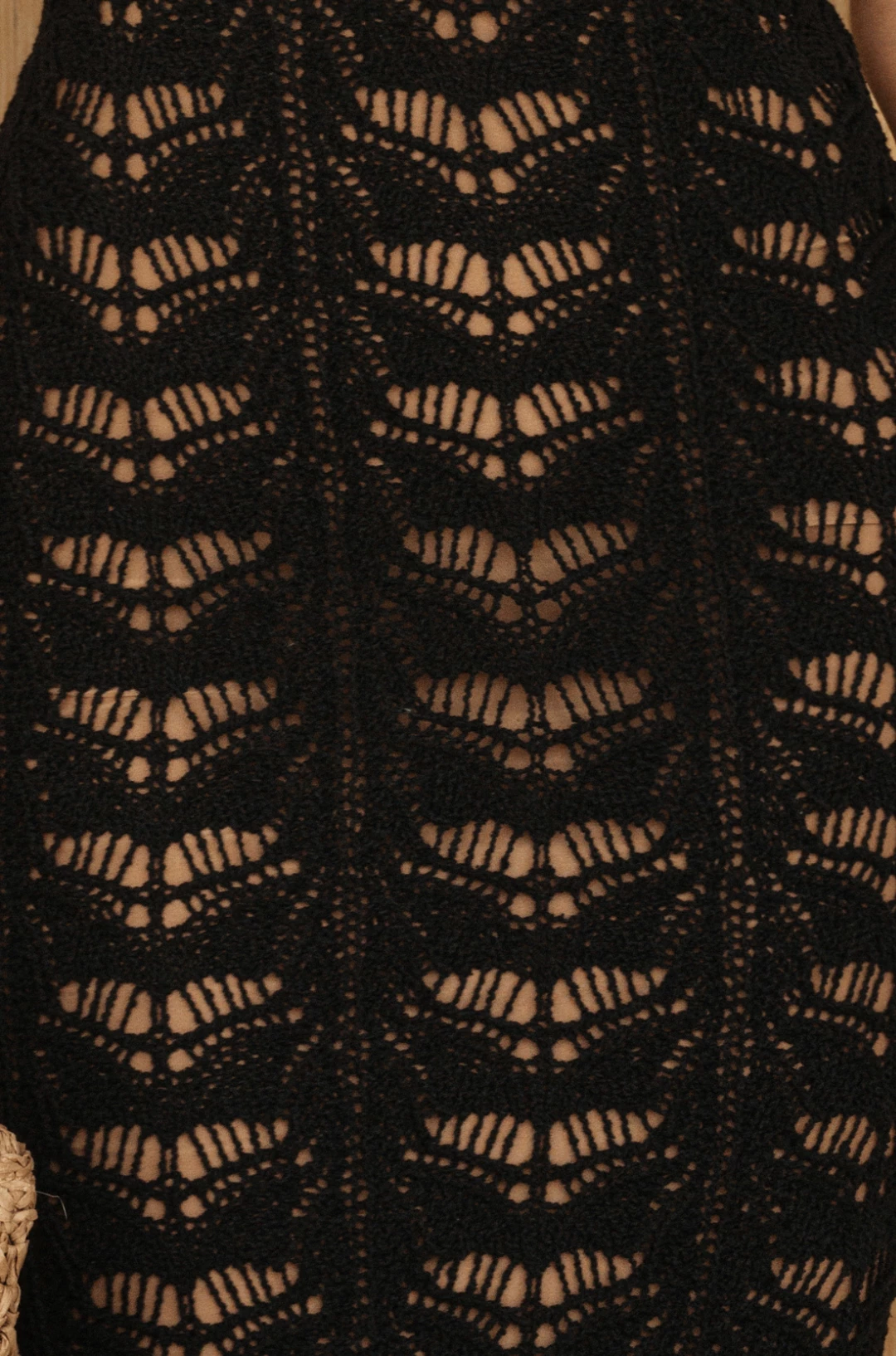 The Black Ocean Eyes Crochet Top is the perfect combination of beachy and chic. Crafted from beautiful crochet fabric, this one of a kind top features a low neckline with a scallop trim and beige interior lining giving off an alluring nude illusion. Complete with adjustable shoulder straps and back hook and eye closure. Pair with our