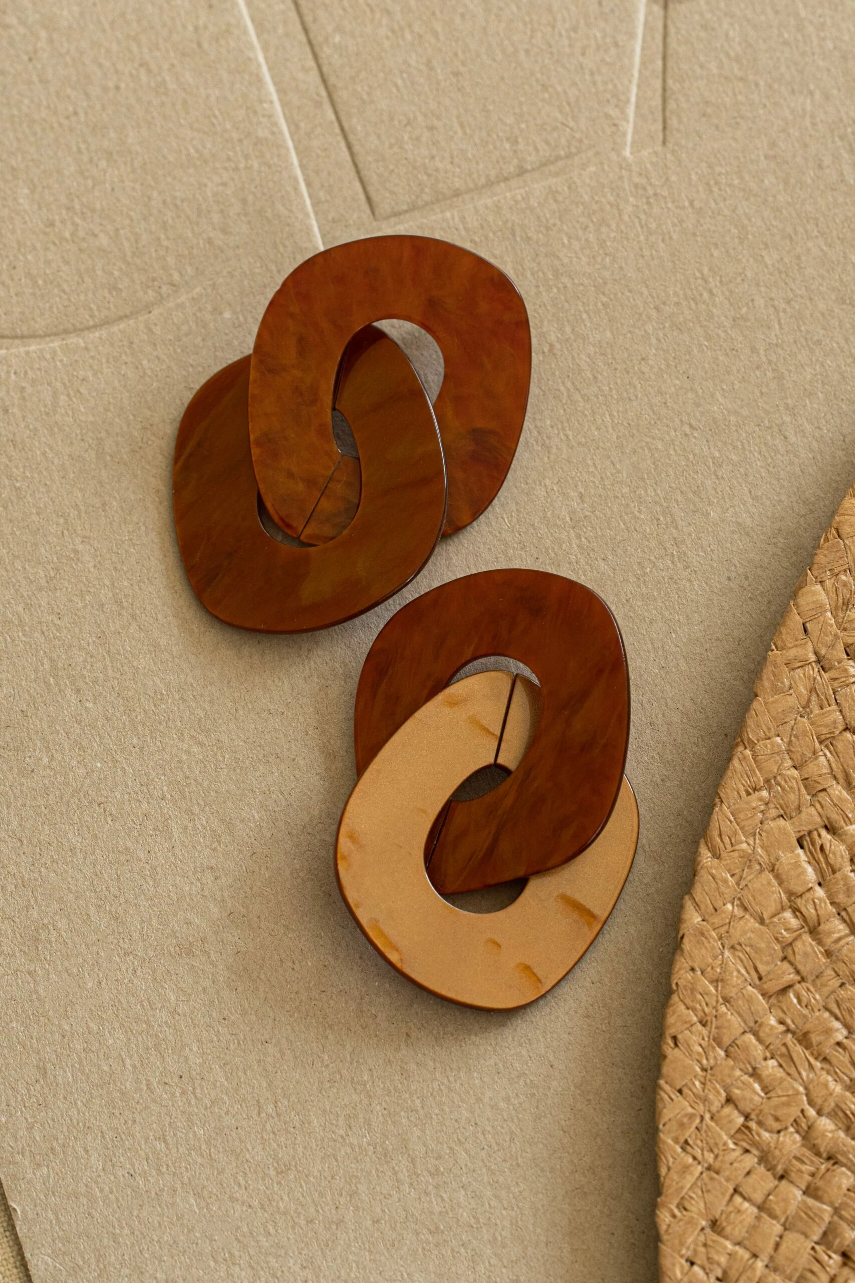 Add a tropical element to your getaway with the Brown Miko Dangle Earrings. Constructed in a charming marble acrylic material, these dangle earring feature a looped design. Complete with a push-back closure.