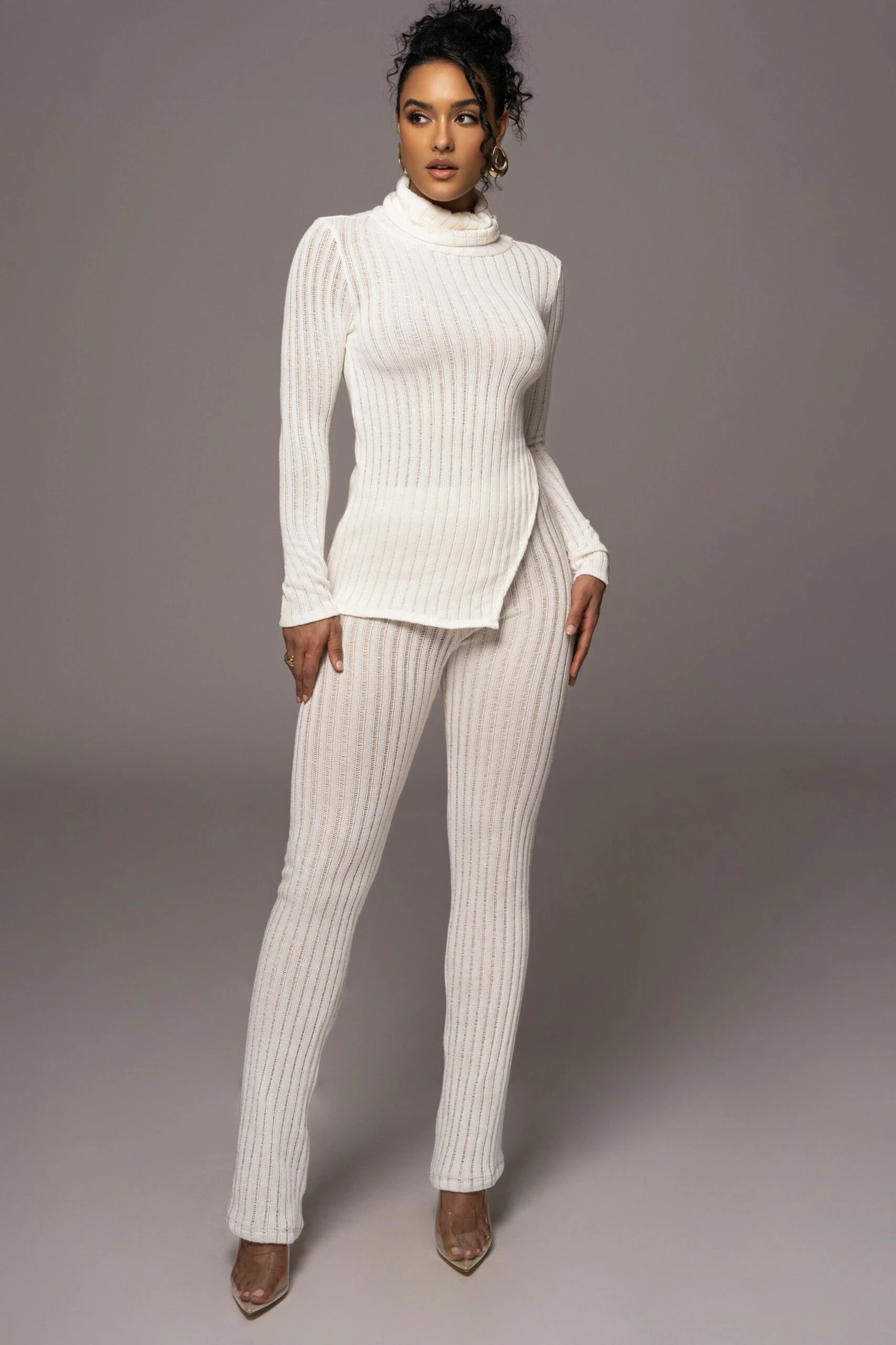 Experience the epitome of comfort and style with our latest arrival, the White Better Together Ribbed Pants. Crafted in a thick rib knit fabric, these versatile pants feature a high waist with elastic band and straight legs. Pair with our